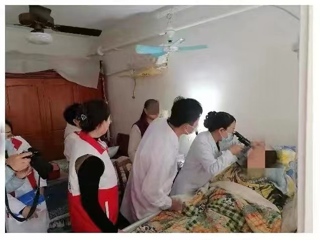 本次揭牌仪式恰逢重阳节,在这个承载着敬老、爱老传统的温馨节日里,市、区红十字会及街道领导与红十字会志愿者开展入户慰问,为社区失能老人送去贴心关怀与节日祝福,让行动不便的老人切身感受到重阳的温暖。同时,来自省眼科医院的专家在现场开展眼科义诊与健康咨询,耐心为老人们检查眼部健康、解答健康疑问,用专业服务守护老人们的“清晰视界”。