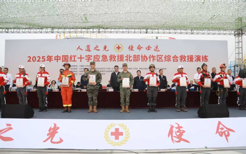 2025年9月28日,由中国红十字会总会指导,山东、内蒙古、辽宁、吉林、黑龙江五省区红十字会联合滨州市人民政府共同主办的“人道之光 使命必达—2025年中国红十字应急救援北部协作区综合救援演练”在惠民县黄河三角洲应急消防实训基地圆满落幕。
