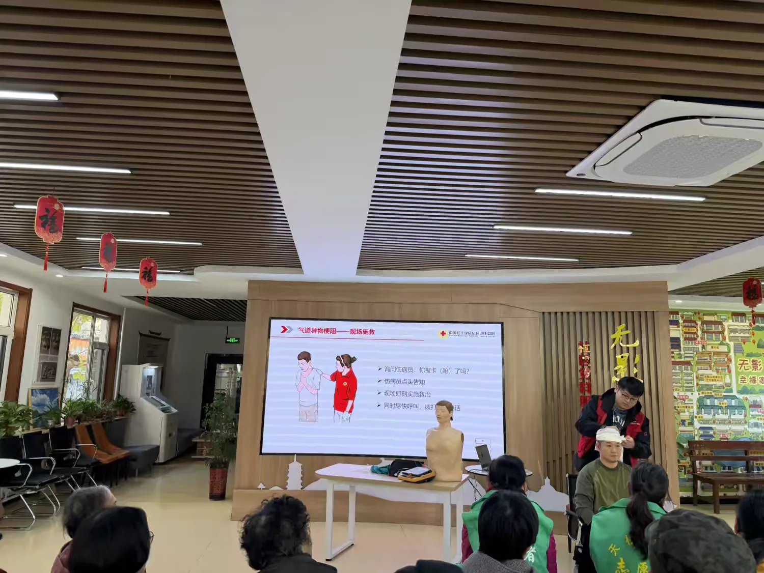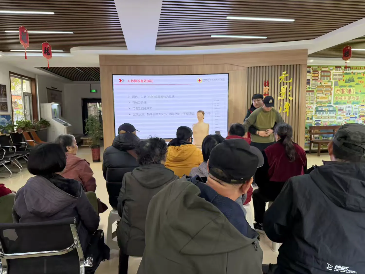 11月26日,天桥区红十字会的“急救课堂”在无影潭社区开讲,社区居民、网格员和志愿者围坐一堂,在专业讲师的带领下,沉浸式学习守护生命的“硬核技能”。