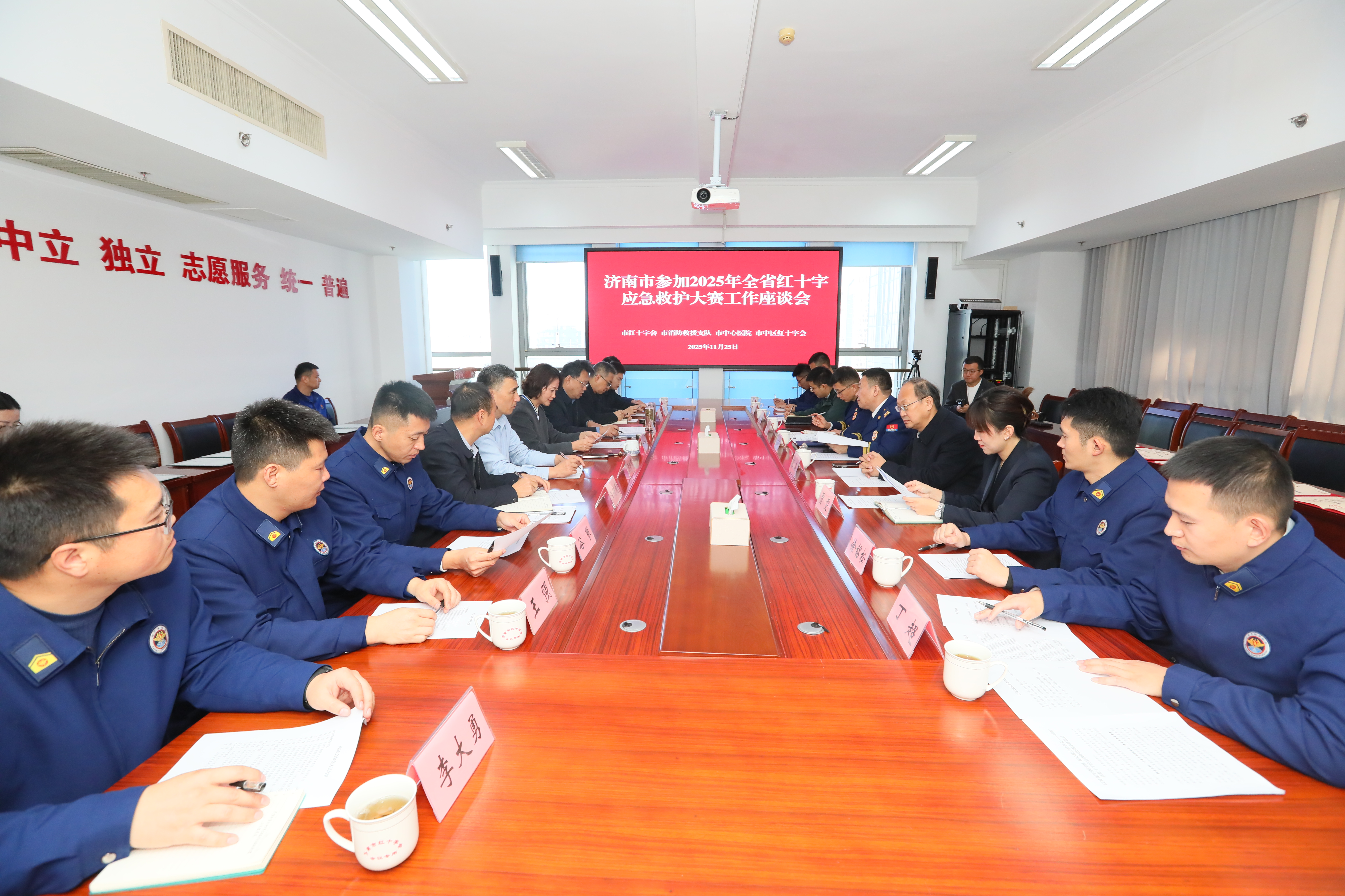 11月25日,市红十字会召开参加全省红十字应急救护大赛工作座谈会,总结交流参赛经验,褒奖参赛支持单位和参赛队员。市红十字会党组书记、常务副会长刘勤,市消防救援支队党委委员、政治部主任郝丕峰,市中心医院党委副书记张易,市中区红十字会党组书记、常务副会长徐琳等参加座谈会。会议由市红十字会党组成员、副会长王永君主持。