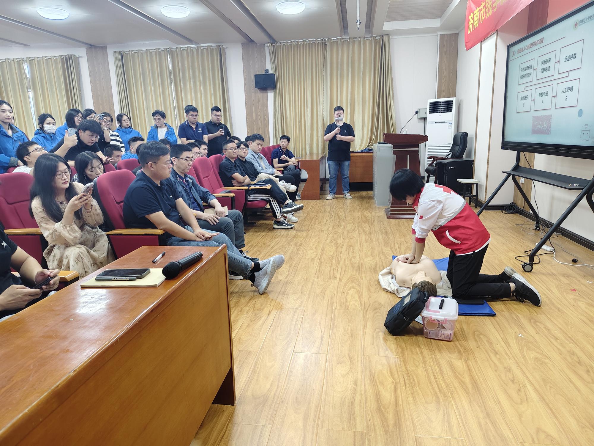 “吃饭时突然噎住、运动中突发心脏不适怎么办?”这些看似遥远的危险,可能就藏在日常学习生活中。区应急救护培训讲师以校园常见的意外场景切入,生动的开场迅速吸引教师们注意力,为培训宣传奠定良好基础。