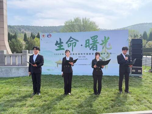 4月3日上午,“生命·曙光”——2026年清明节捐献者追思活动在山东省暨济南市遗体捐献纪念广场举行。红十字学校代表、济南市红十字遗体(角膜)捐献志愿服务队,以及来自全省各地的捐献者家属约300余人齐聚广场,共同缅怀纪念捐献者,弘扬生命接力时代新风。市红十字会党组成员、副会长李宁,山东福寿园发展有限公司总经理王晖,长清区红十字会党组书记、常务副会长刘军等出席活动。