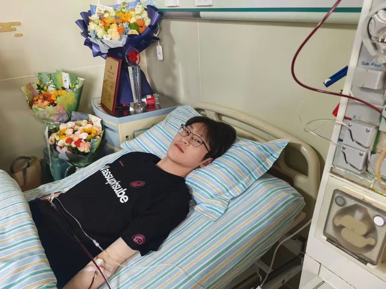 这件事像一根尖刺深埋于我的心底。进入大学后,一次学生会的“髓缘”活动让命运的齿轮就此转动。医生向我们讲述白血病患者的等待与期盼,讲述配型成功的渺茫与珍贵,也讲述一份干细胞就是一次重生的可能。我毫不犹豫加入了中华骨髓库,那时的我尚不知命运会以何种方式回应这份初心,只觉得身为药学人能以己之力,为生命托底,本就是分内之事。当电话响起,工作人员告诉我,我与一位患者配型成功。那一刻,心中没有惊天动地的波澜,只有一种沉静而坚定的力量:我要去!父母最初是担忧的,我用专业知识解释捐献的原理、流程与安全性,打消了他们的顾虑。他们最终的支持,不仅是因为对现代医学的放心,更是因为懂得。这份选择是一个青年最朴素的善良,也是向曾经的少年递上的一份不负初心的答卷。注射动员剂的日子里,身体偶有酸胀,但我从未动摇。躺在采集床上时,我忽然想起无数个在实验室里埋头的瞬间,这一次,我的血液成了“最珍贵的制剂”,将要流向远方,注入一个素未谋面的生命中。