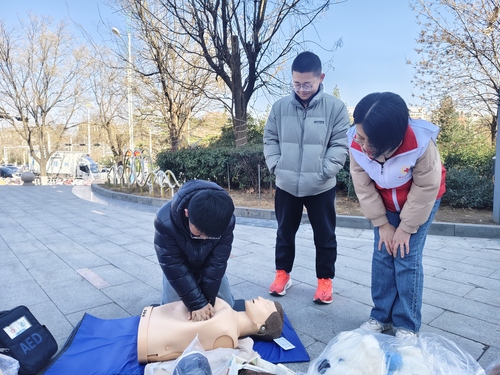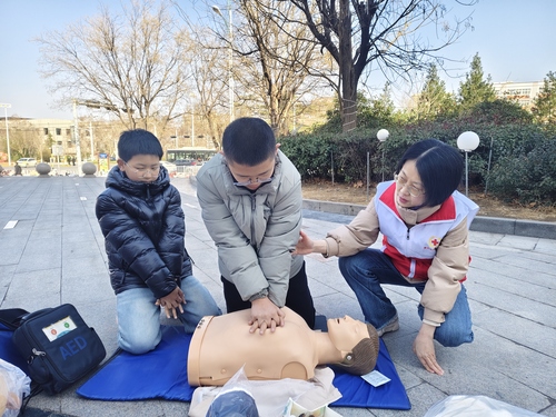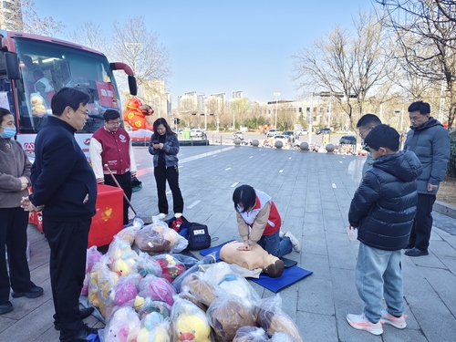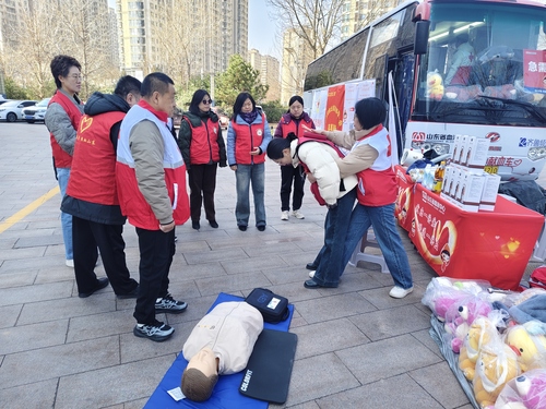 活动现场,区红十字会志愿者结合日常生活中常见的突发情况,用通俗易懂的语言,向来往群众和省血液中心的志愿者们系统讲解心肺复苏、气道异物梗阻的急救知识,重点演示了胸外按压的着力点、按压深度和频率,以及海姆立克急救法的操作要领,清晰解读了急救过程中的常见误区,让群众明白“黄金4分钟”的重要性。志愿者还邀请群众现场实操演练,手把手纠正操作细节,确保大家听得懂、学得会、用得上,真正掌握守护生命的“硬核技能”。