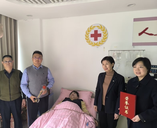 慰问现场,济南市红十字会为胡玮颁发造血干细胞捐献奖杯与荣誉证书,高度肯定其跨越血缘、挽救生命的无私善举;天桥区红十字会负责同志与胡玮亲切交流,细致询问采集过程与身体状况,对她义无反顾捐献造血干细胞的大爱精神表示由衷敬佩。随后,参与慰问人员与胡玮合影留念,慰问活动圆满结束。