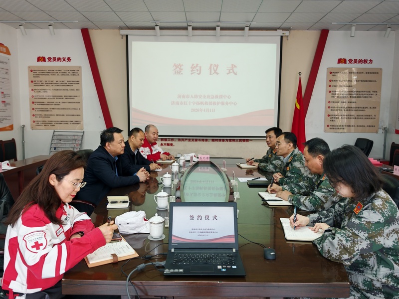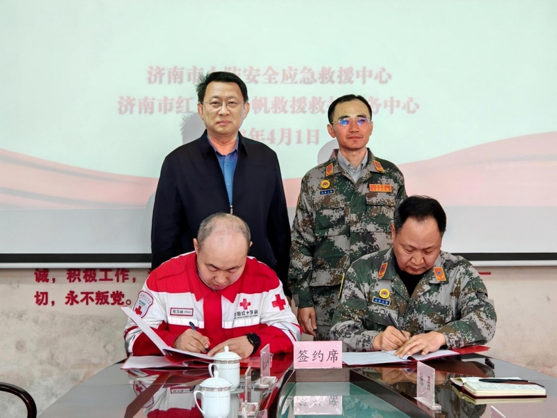 为进一步提升应急救援协同能力,助力“平安济南”建设,4月1日上午,济南市红十字扬帆救援救护服务中心与市人防安全应急救援中心,举行“济南国动人防应急救援队”共建合作签约仪式。市红十字会党组成员、副会长王永君,市国动办党组成员、副主任郎咸颖及双方中心负责人出席仪式。