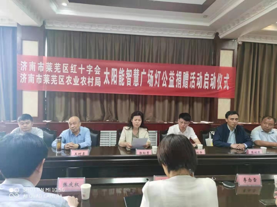 为巩固脱贫攻坚成果,助力乡村振兴,改善乡村人居环境,方便村民夜间活动照明,5月13日上午,济南市“点亮乡村·平安家园”太阳能智慧广场灯捐赠活动——莱芜区启动仪式在牛泉镇镇政府举行,济南市红十字会党组副书记、副会长郭向芳,济南市农业农村局一级调研员王树勇参加捐赠仪式,莱芜区副区长李娅丽代表莱芜区接受捐赠。